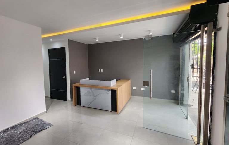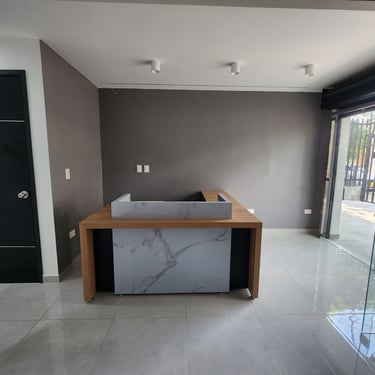Proyecto integral de construcción y diseño interior de oficina comercial. Desde la obra gris hasta los acabados modernos, se priorizó una estética sobria y elegante, con materiales de alta calidad, iluminación estratégica y mobiliario a medida para optimizar el espacio de atención al cliente.